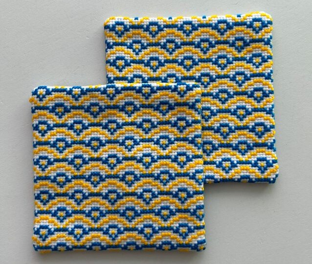クロスステッチ刺繍のコースターです。 青海波の柄を2色使いでアレンジしました。